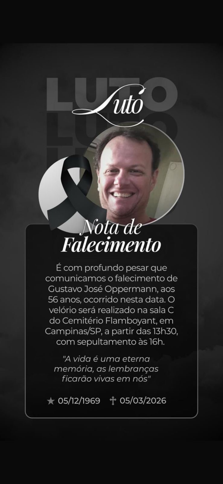 O Guarani Futebol Clube manifesta seu profundo pesar pelo falecimento de Gustavo José Oppermann, aos 56 anos.